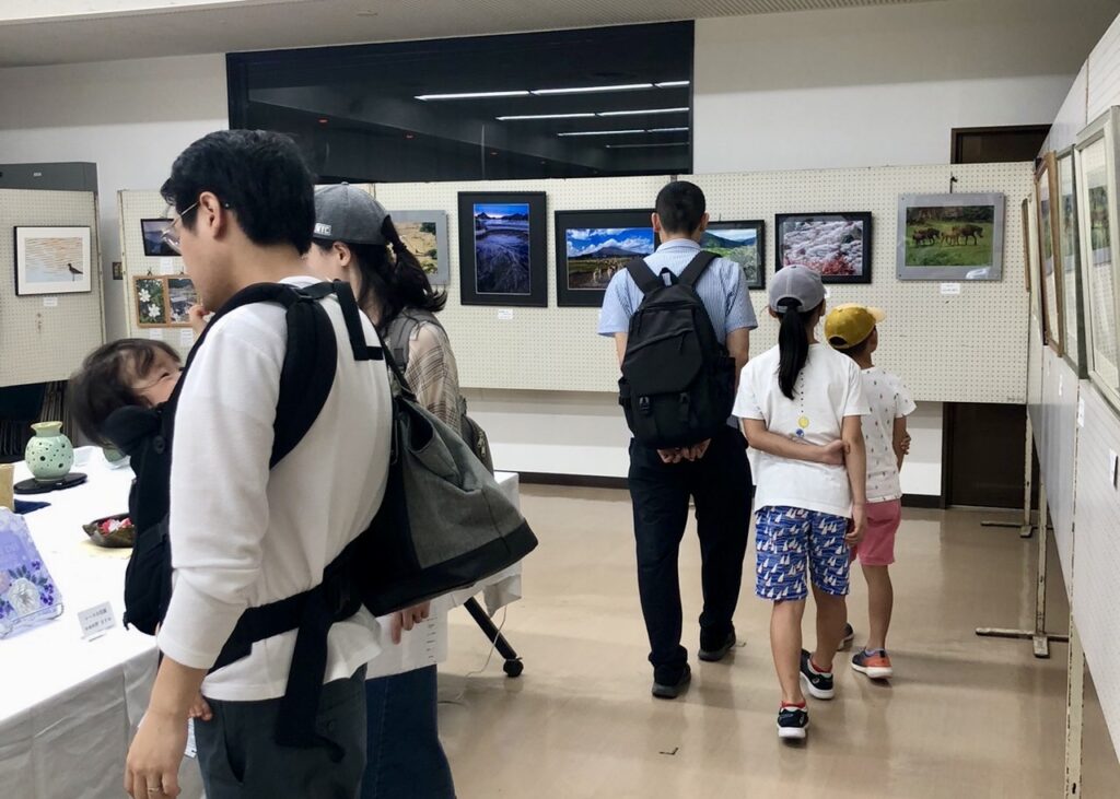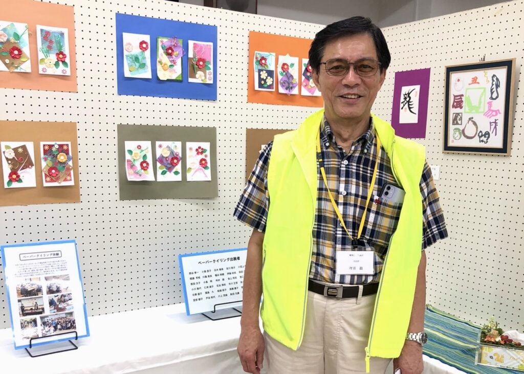 作品展示室には、絵画や組みひも、写真など多くの作品が並んだ。作品を展示した団体の一つ、天白鯱城会会長の坪井徹さん(73歳)は「名古屋市の高年鯱城学園に所属する天白こじょう会の会員は約140名です。どれも素晴らしい作品ばかりです」と笑顔を見せた。