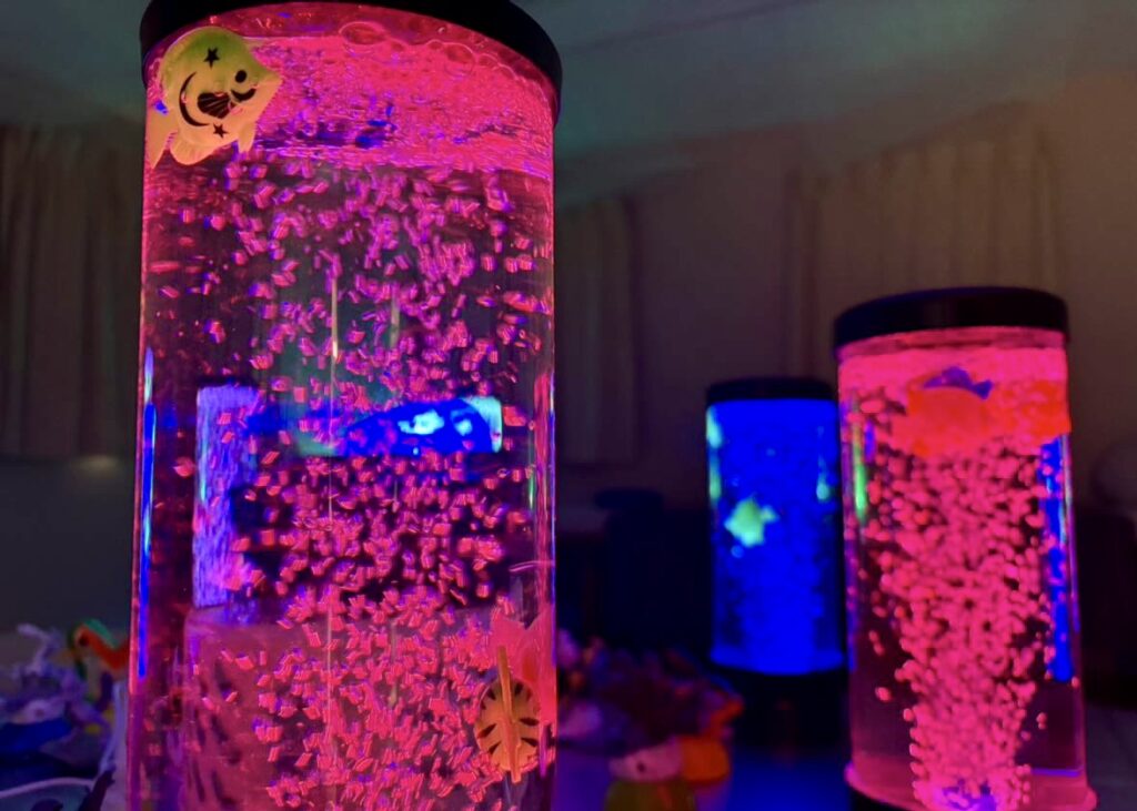 今年はスヌーズレン体験も開催。スヌーズレンとは、オランダ語の「くんくん匂いをかぐ」と「うとうとする」という2つの言葉をあわせた造語で、光、音楽、触感、香りなどの心地よい感覚刺激を提供し、それらを楽しみながらリラックスしてもらう癒やし空間、活動のことで、普段落ち着きがない人が心地よく過ごしたり、眠りについたりする効果もみられるという。来場者の中にもスヌーズレンを体験する人もいた。