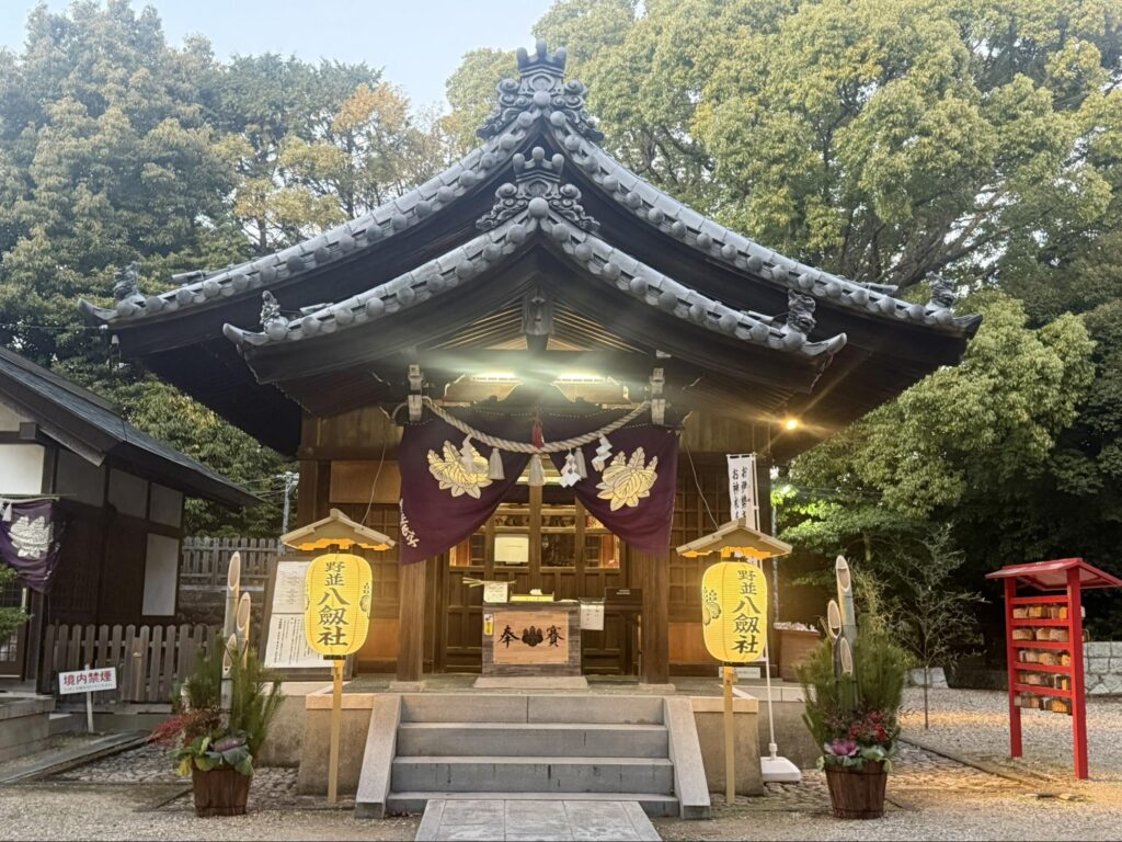 南天白総鎮守として地域の人たちから崇拝される 野並八劔社(はっけんしゃ)。日本武尊(やまとたけるのみこと)を主祭神に九柱の神々が祀られています。戦国時代、大宮司である千秋季信が胎児で出世したという逸話から就職祈願、出世祈願の社として、厄除開運、必勝、良縁、商売繁盛などにご利益があると伝えられています。境内は清々しい空気に包まれ、四季折々の自然を感じることができます。