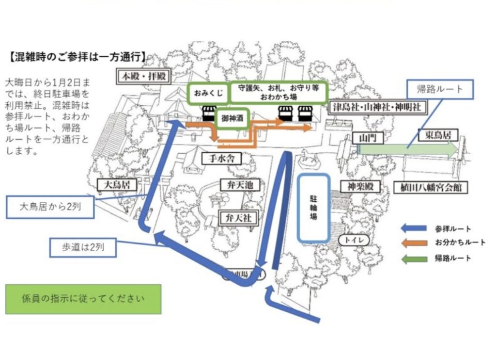 参拝はいつでもできますが、混雑時は一方通行となります。